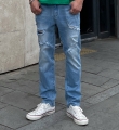 은은한 워싱이 들어간 데님팬츠입니다. 겨울을 제외한 나머지 계절에 착용하기 좋은 두께감은 물론 시원한 연청 컬러와 폭 넓은 사이즈로 제작되어 하나쯤 소장하여 활용하기 좋아 추천드리는 아이템이며 은은한 워싱과 찢어진 디자인으로 트렌디한 코디가 가능하고 반팔티, 맨투맨, 후드티등 다양한 하의와 디자인 구애없이 매치하여 남친룩, 꾸안꾸룩, 데일리룩등 여러 코디가 가능하고 핏 또한 슬림핏이지만 신축성이 있어 좀 더 여유있는 착용감을 느끼실 수 있습니다. SIZE 30,32,34,36,38,40,42,44,46 모델착용 [KIHOON]색상 : 연청 / 사이즈 : 36