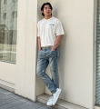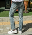 포인트 주기 좋은 데님 팬츠입니다. 겨울을 제외한 나머지 계절에 착용하기 좋은 두께감은 물론 은은한 워싱과 포켓밑 스티치, 찢어진 듯한 디자인으로 디테일이 많아 하나쯤 소장하여 두고두고 활용하기 좋아 고객님들께 추천드리는 아이템이며 반팔 티, 니트, 남방 등 다양한 상의와 매치하여 캐주얼룩, 남친룩, 데일리룩 등 여러 연출이 가능하고 핏 또한 슬림핏이지만 신축성이 있어 좀 더 여유 있는 착용감을 느끼실 수 있습니다. SIZE 30,32,34,36,38,40,42,44,46 모델착용 [JUNBEOM]색상 : 그린옐로우청 / 사이즈 : 36