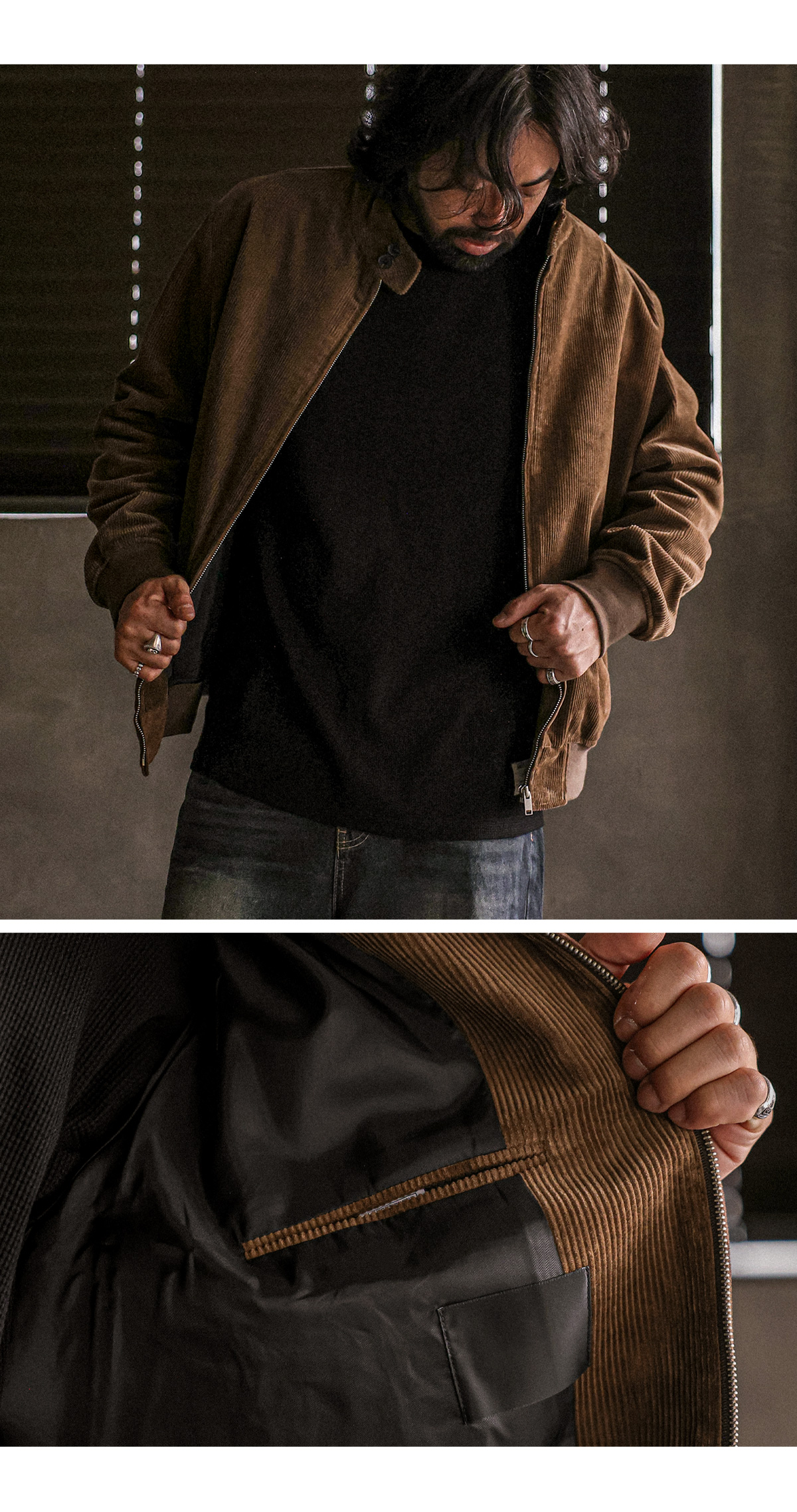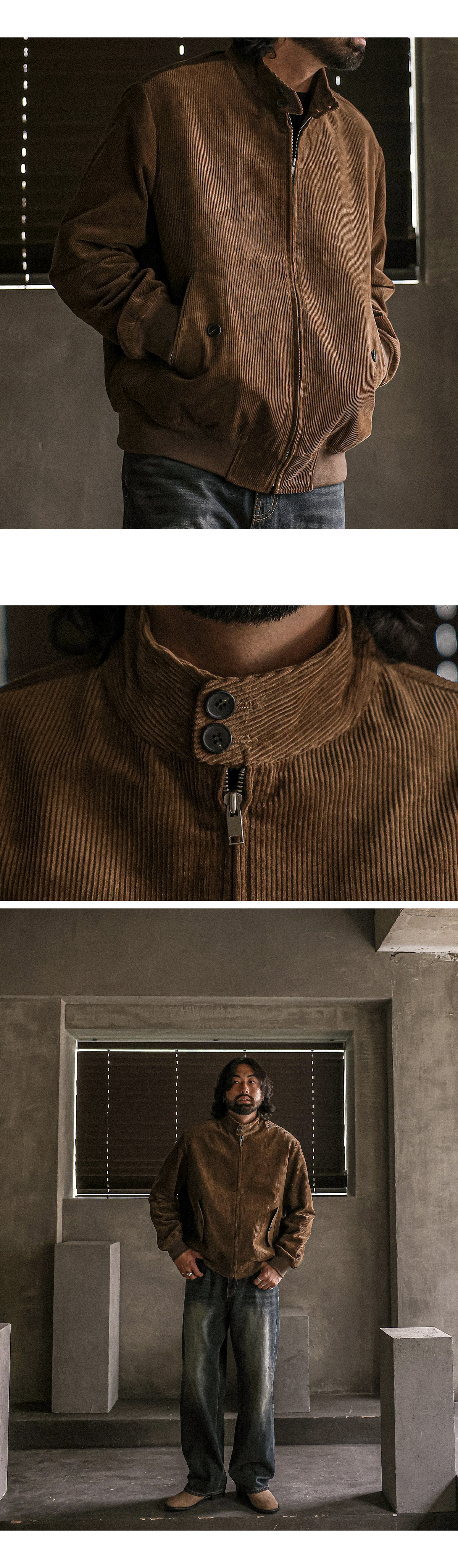 소장가치가 있는 점퍼입니다. 가을부터 겨울초까지 착용하기 좋은 두께감은 물론 골덴원단과 넥라인의 단추로 포인트 주어 손쉽게 멋스러운 분위기를 연출하실 수 있고 데님팬츠, 면팬츠, 슬랙스등 다양한 하의와 매치하여 댄디룩, 캐주얼룩, 남친룩 등 여러 연출이 가능하며 핏 또한 살짝 오버핏으로 좀 더 여유있는 착용감을 느끼실 수 있습니다. SIZE XL-2XL(3번),3XL-4XL(4번),5XL(5번) 모델착용 [KIHOON]색상 : 브라운 / 사이즈 : 3XL-4XL(4번) ![]() ![]() ![]() ![]() ![]() ![]() ![]() ![]()