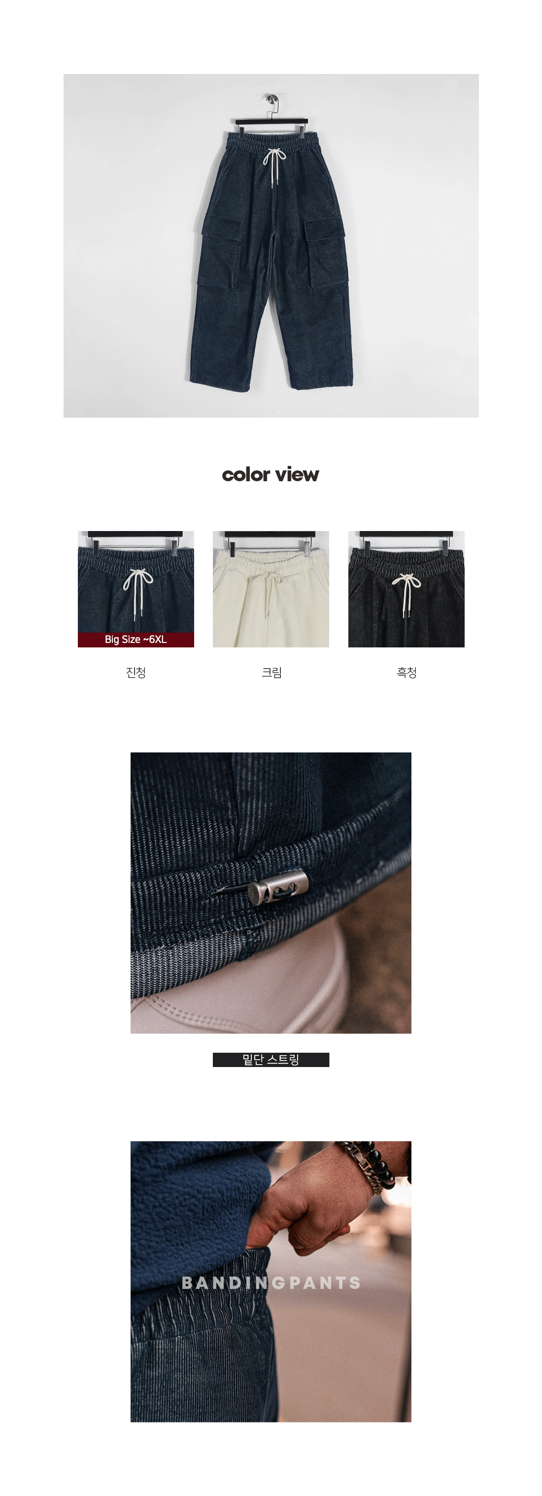 MD COMMENT 하나쯤은 소장하기 좋은 골덴팬츠입니다. 가을부터 겨울내내 착용하기 좋은 두께감은 물론 골덴원단으로 제작되어 보온성이 좋고 카고 포켓으로 포인트 주어 하의 하나로도 멋스러운 코디가 가능하며 밑단 스트링이 있어 여러 연출을 하실 수 있고 핏 또한 와이드 핏으로 여유있는 착용감을 느끼실 수 있습니다. SIZE XL-2XL,3XL-4XL,5XL-6XL 모델착용 [KIHOON]색상 : 진청 / 사이즈 : XL-2XL