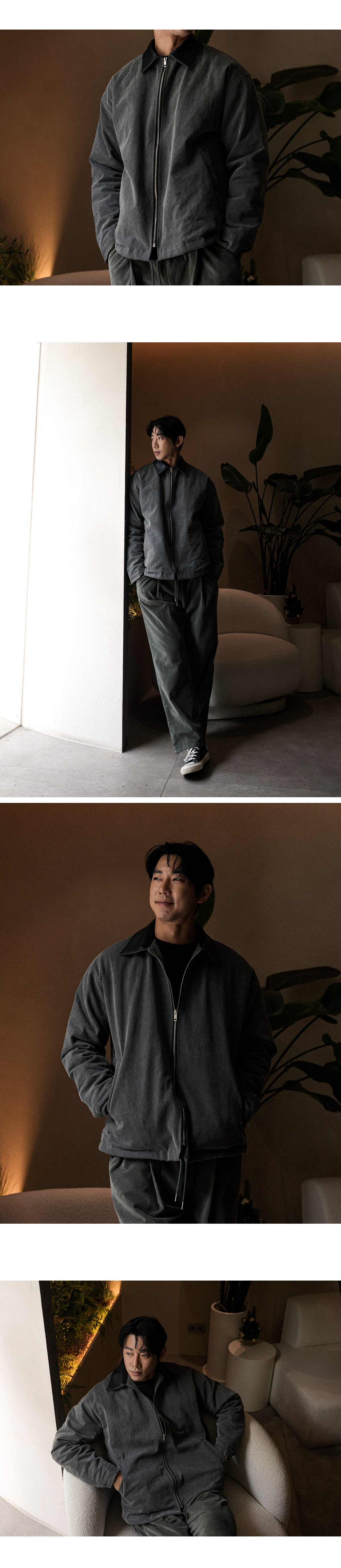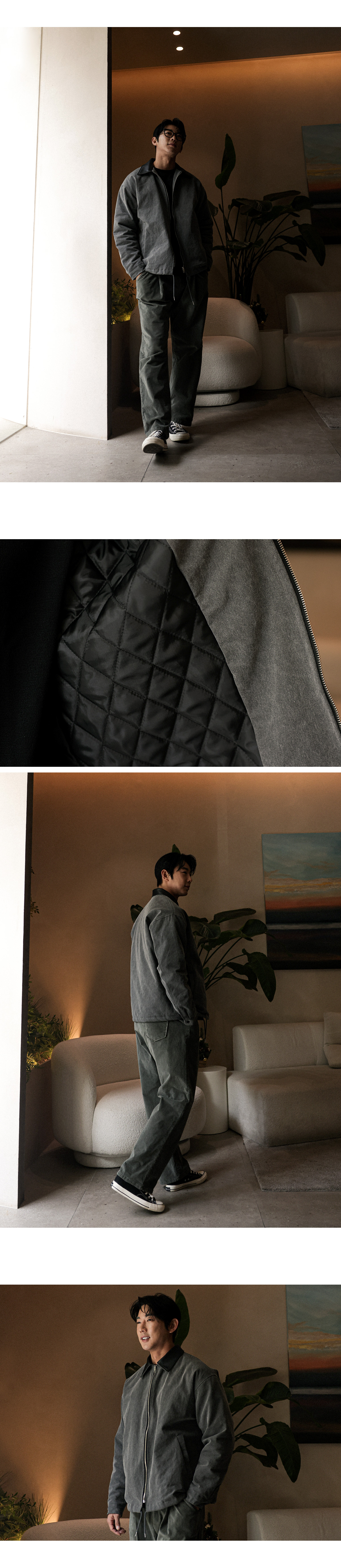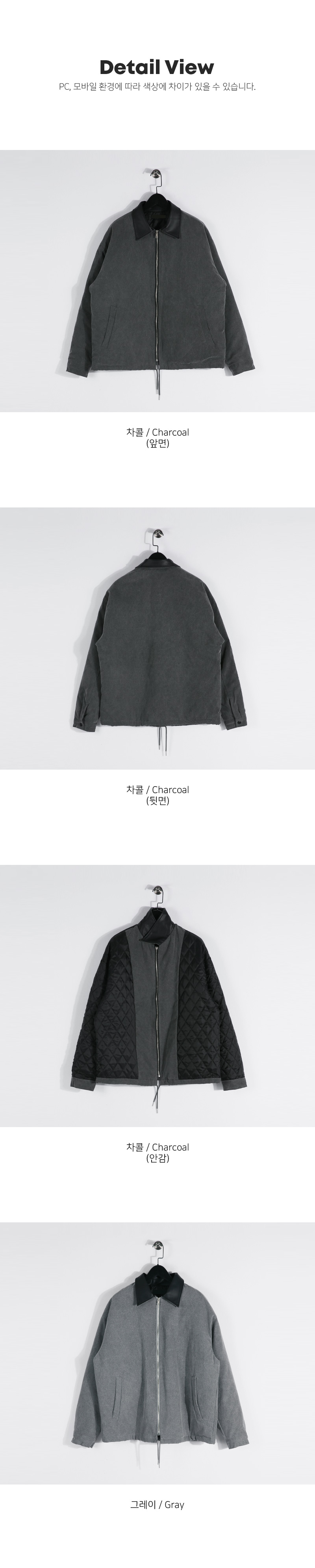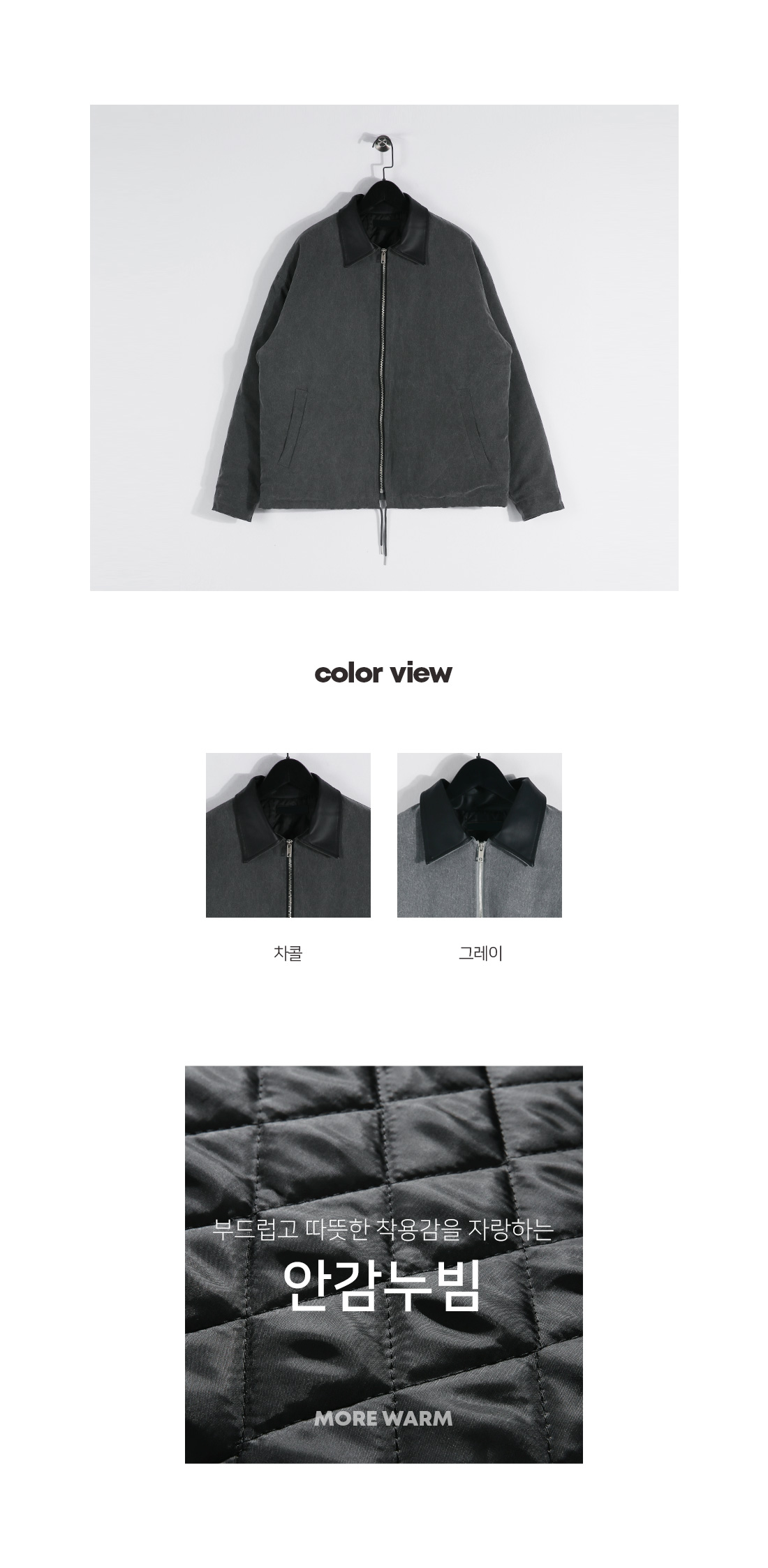 빈티지한 분위기의 워크점퍼입니다. 늦가울부터 겨울초까지 활용하기 좋은 두께감은 물론 누빔 안감을 으로 제작되어 보온성이 좋고 카라를 레더 원단으로 포인트를 주었고 전체적인 피그먼트 워싱이 들어가 손 쉽게 멋스러운 코디가 가능하며 데님팬츠, 면팬츠, 워크팬츠 등 다양한 하의와 매치하여 데일리룩, 캐주얼룩, 워크웨어룩 등 여러 연출이 가능하고 핏 또한 살짝 오버핏으로 좀 더 여유있는 착용감을 느끼실 수 있습니다. SIZE XL-2XL(3번),3XL-4XL(4번) 모델착용 [JUNBEOM]색상 : 차콜 / 사이즈 : XL-2XL(3번) ![]() ![]() ![]() ![]() ![]() ![]() ![]() ![]()